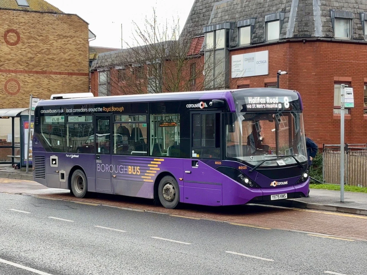 Turning off the main road at Kingston Lane, we passed the Brunel University campus on our right before continuing to Hillingdon Hospital, where a few alighted. It was then through the estate roads of Violet Avenue and Apple Tree Avenue to Falling Lane, before reaching Yiewsley Library and adjacent West Drayton, where we terminated at the station, this terminus now restored after a long period of closure for road resurfacing. A simple 35 min journey.