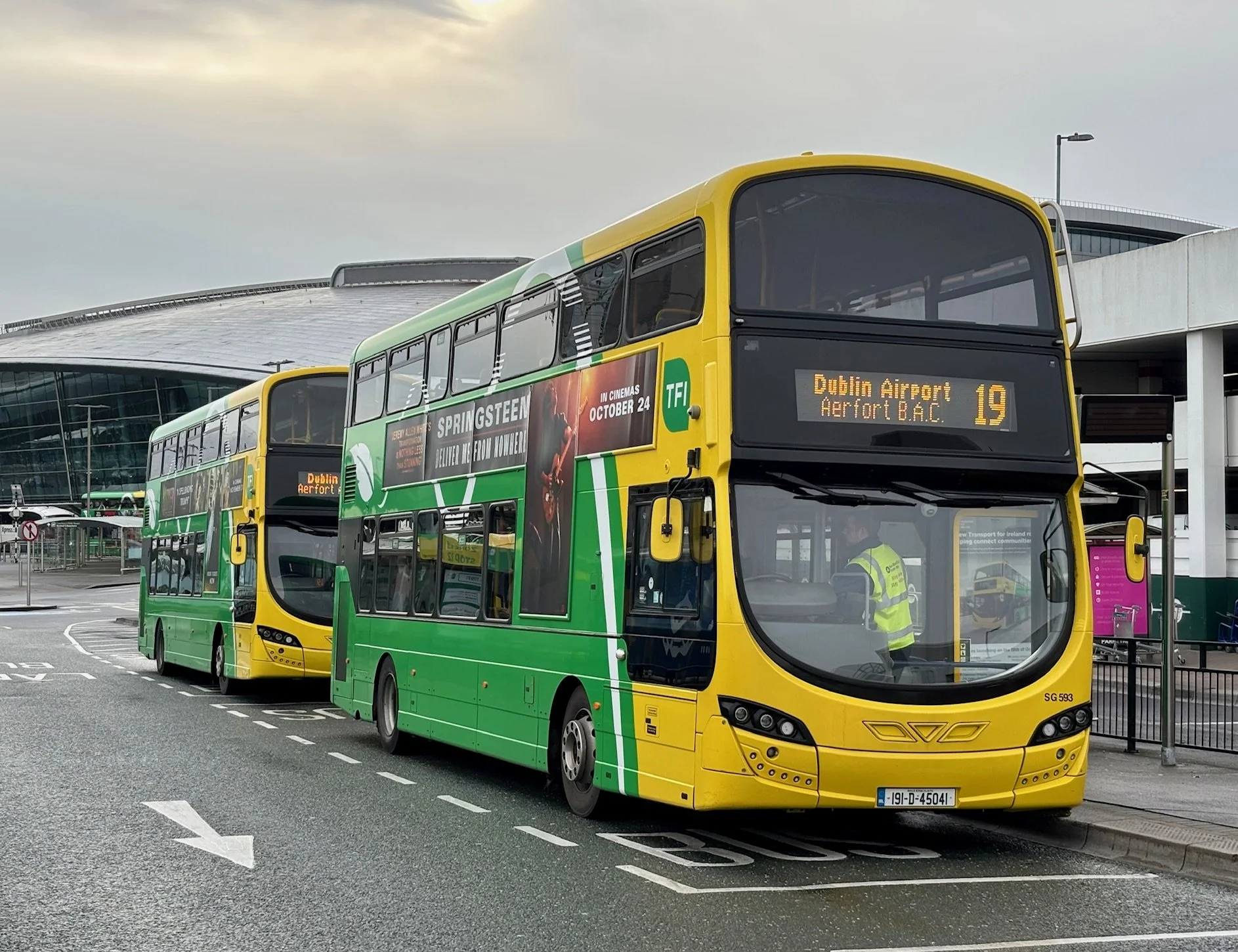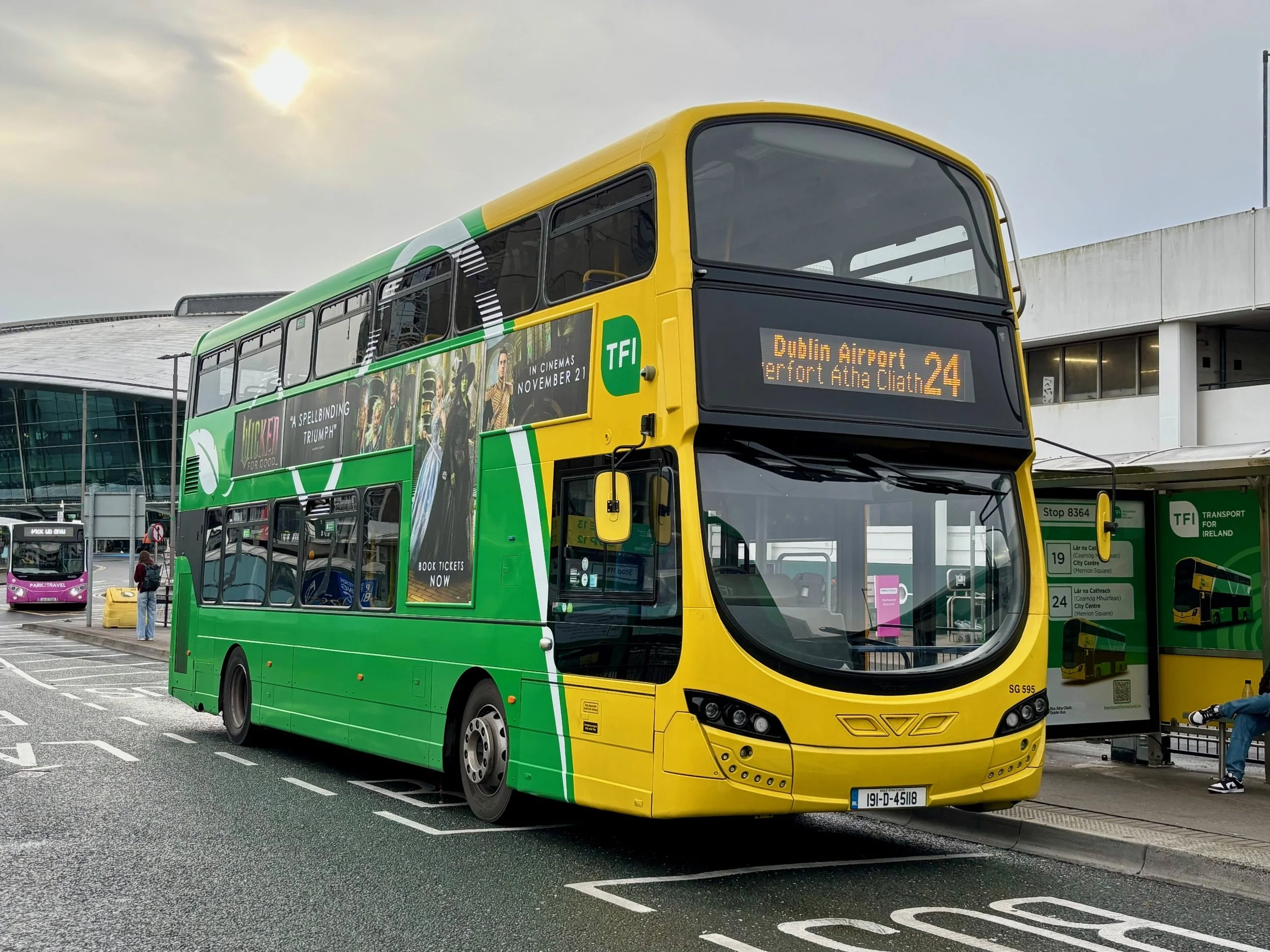 Dublin Bus Volvo B5TL SG595 of Phibsborough Garage at Dublin Airport on Route 24, which began in October 2025, before I rode it to the city centre.