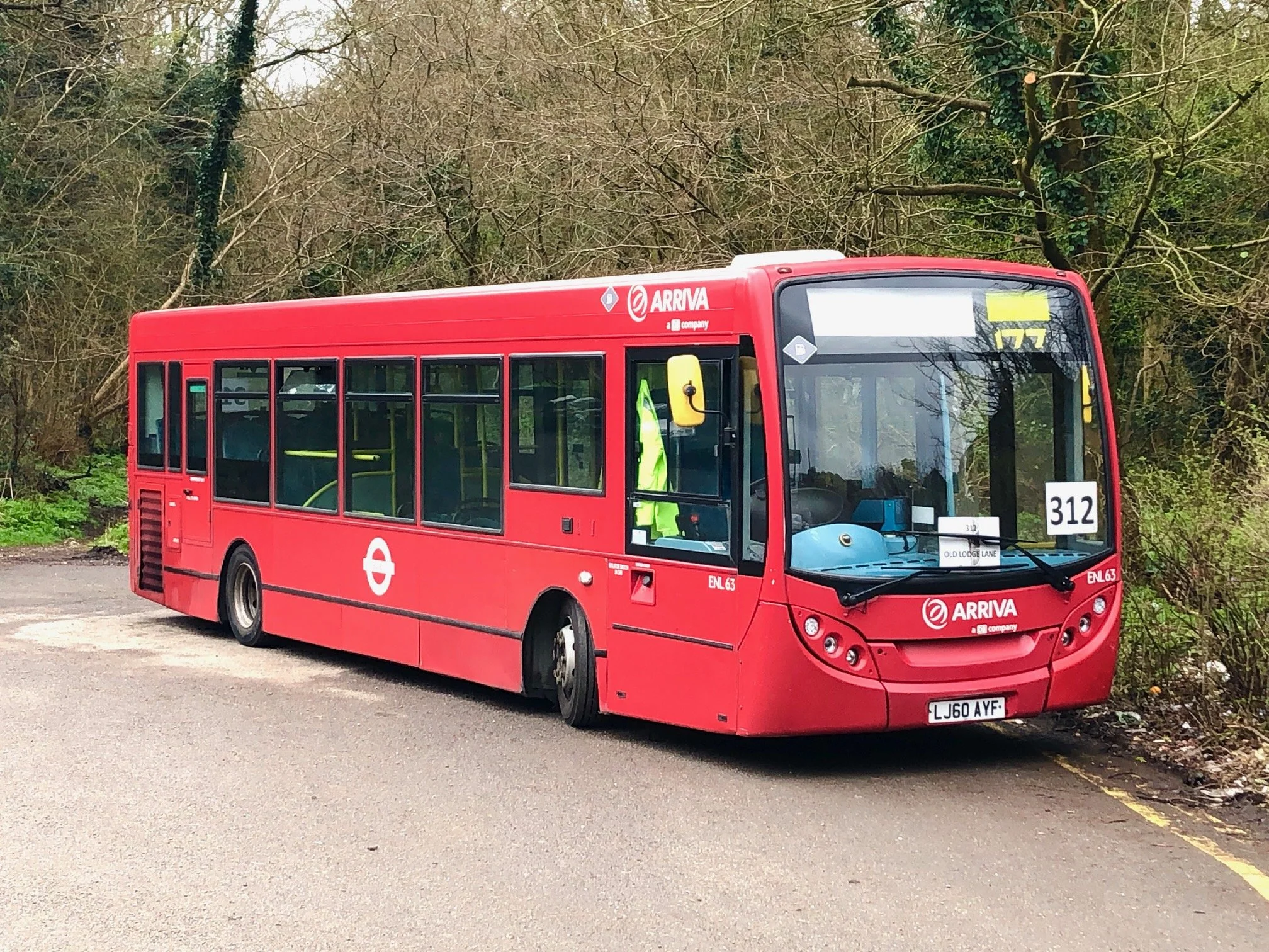However, from mid November 2025, a new 7 year long term contract came into effect, awarded back to Arriva again, but this time operated by Enfield (E) Garage, incidentally taking the 217 back to its ancestral home which it occupied for many decades until 1990. Whilst new ES class electrics are promised in due course, for now, existing diesels provide temporary cover, mainly utilising DWs made redundant from Wood Green (WN) Garage a few weeks prior when the 144 was relinquished to GAL. One or two ES types also turn out in support, taken from the existing allocations for the 279 and 307 at Enfield Garage, giving a taste of what will eventually be the standard fare on the route.