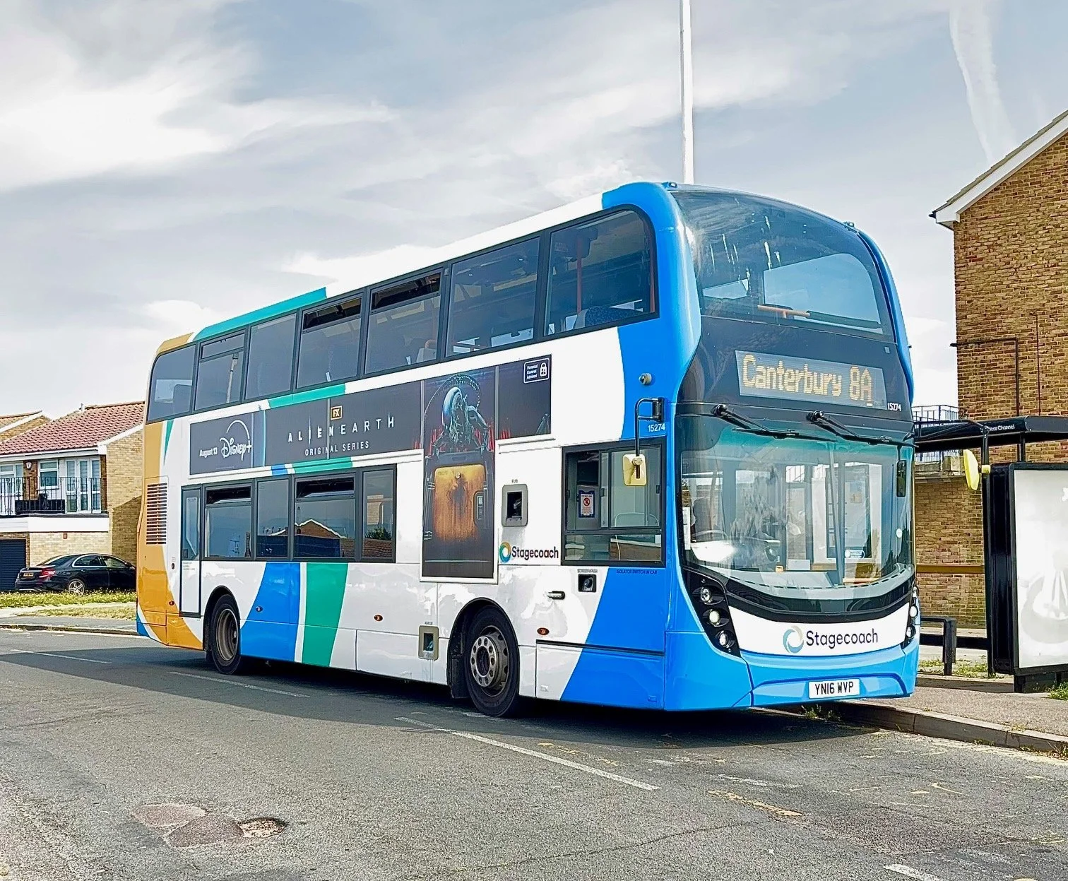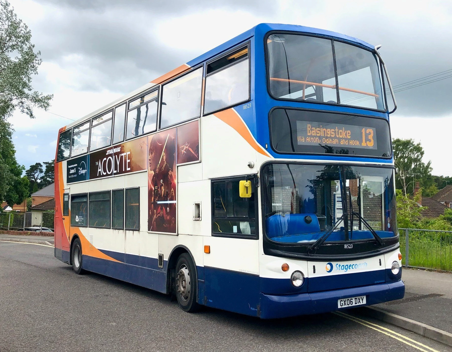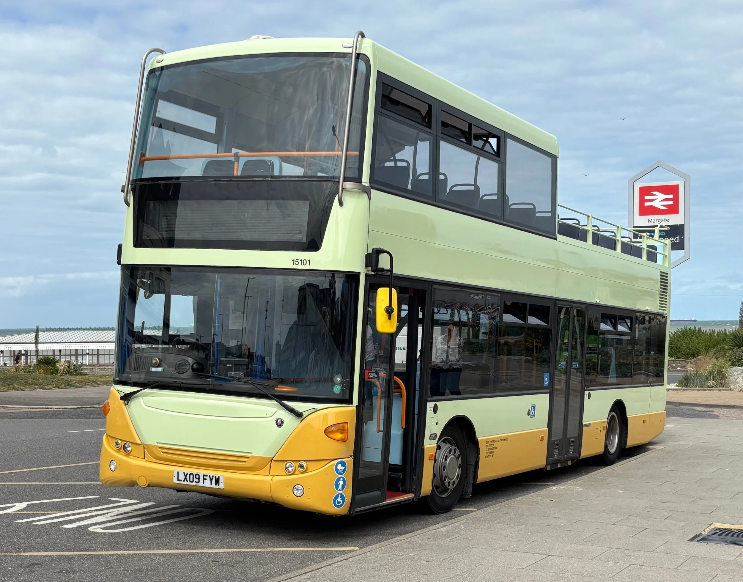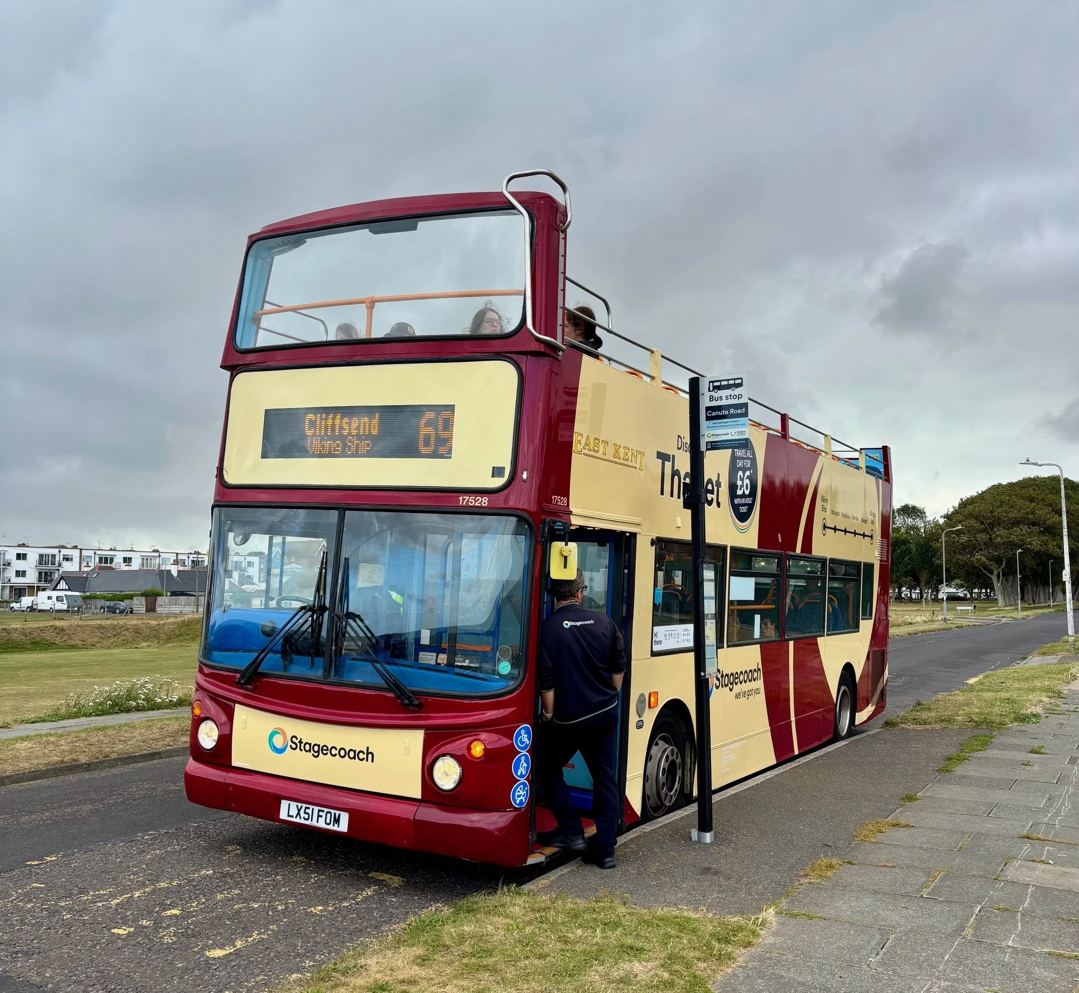 This bus is one of three Tridents in this special livery and was formerly with Stagecoach Devon on “Bayline” routes in Torquay.