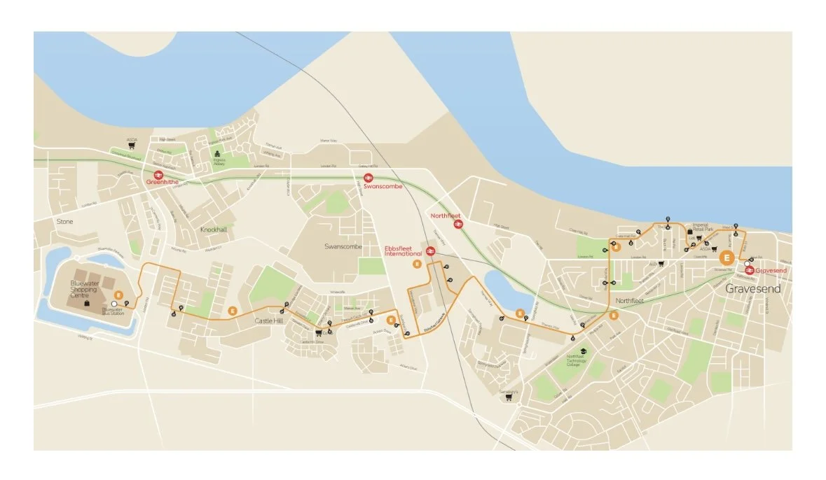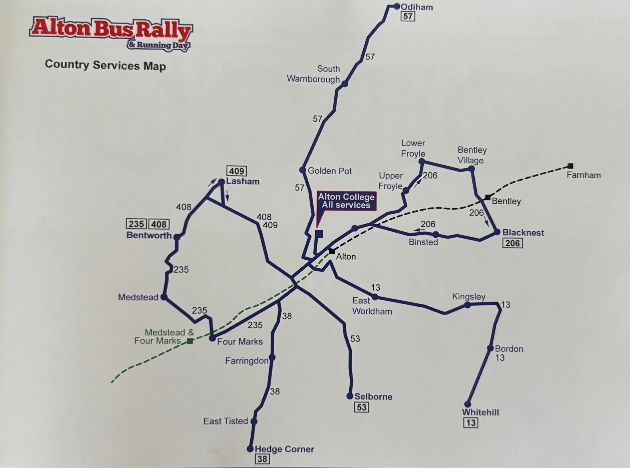 An Hourly service operates on this route between approx 0900 and 1800 requiring 3 buses.