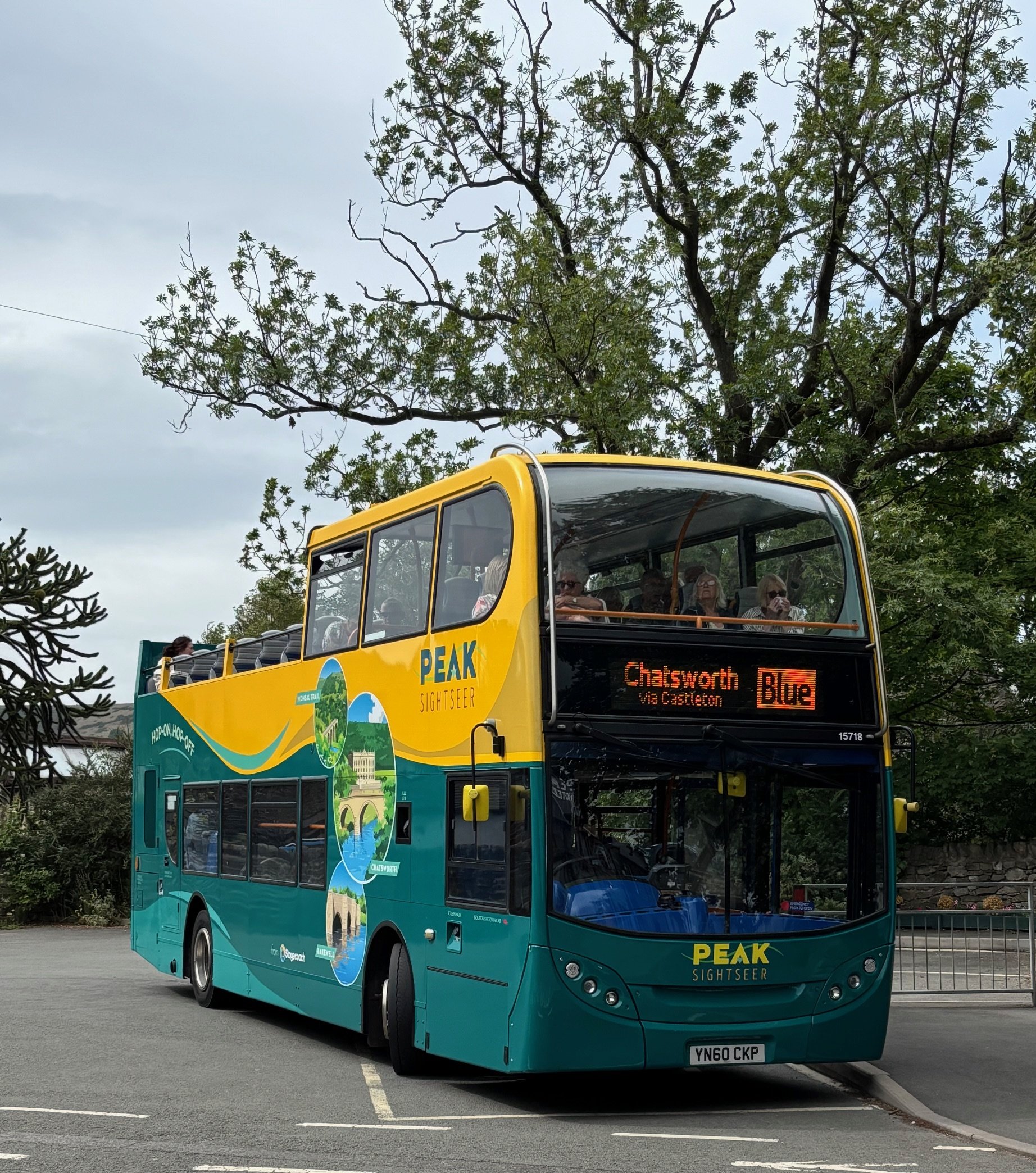 Back at Chatsworth, it was time to complete the circuit on the Open Toppers, by taking the BLUE route back to my start point at Castleton. On this occasion, the vehicle was another of the Enviro400s, 15718. A few takers but quieter than the morning trip had been, for the 55min ride. Alighting at the visitor centre, I had time for refreshments in the adjacent tea rooms before catching the bus home.