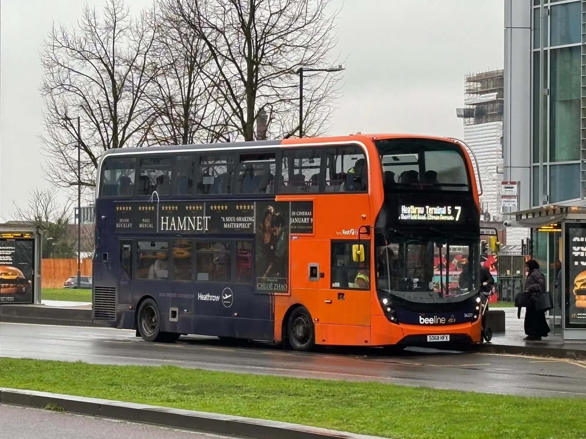 Whilst LTs form the main allocation on the H98, a few diesel and hybrid Enviro400s make up the numbers, with LVF showing me that one of the latter, ADH45072, was on the following working. Therefore, I awaited its arrival at Hayes End, the bus being one of those that has come full circle, new to First at Westbourne Park (X), then passing through Tower Transit and RATP Group, before returning to its original owner once again when First returned to London in 2025. The purple First interior and Tower Transit moquette providing the evidence!