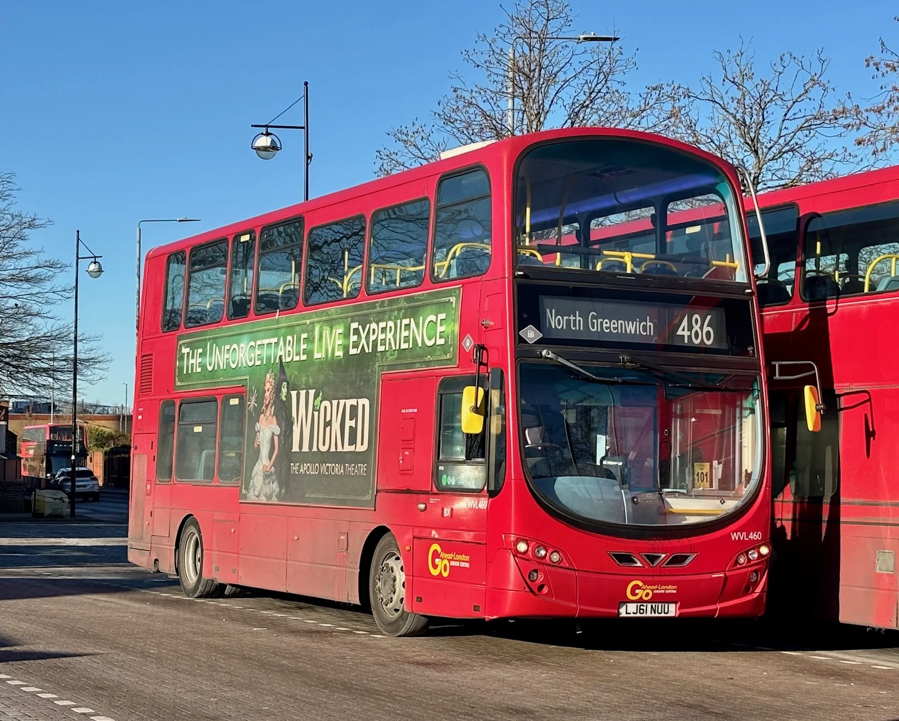 Another route expected to receive new electrics in due course upon contract renewal with GAL in February 2026 is the 486. Meantime, existing diesels continue, like Volvo B9TL WVL460 of BX Garage, seen at the Friswell Place stand in Bexleyheath.