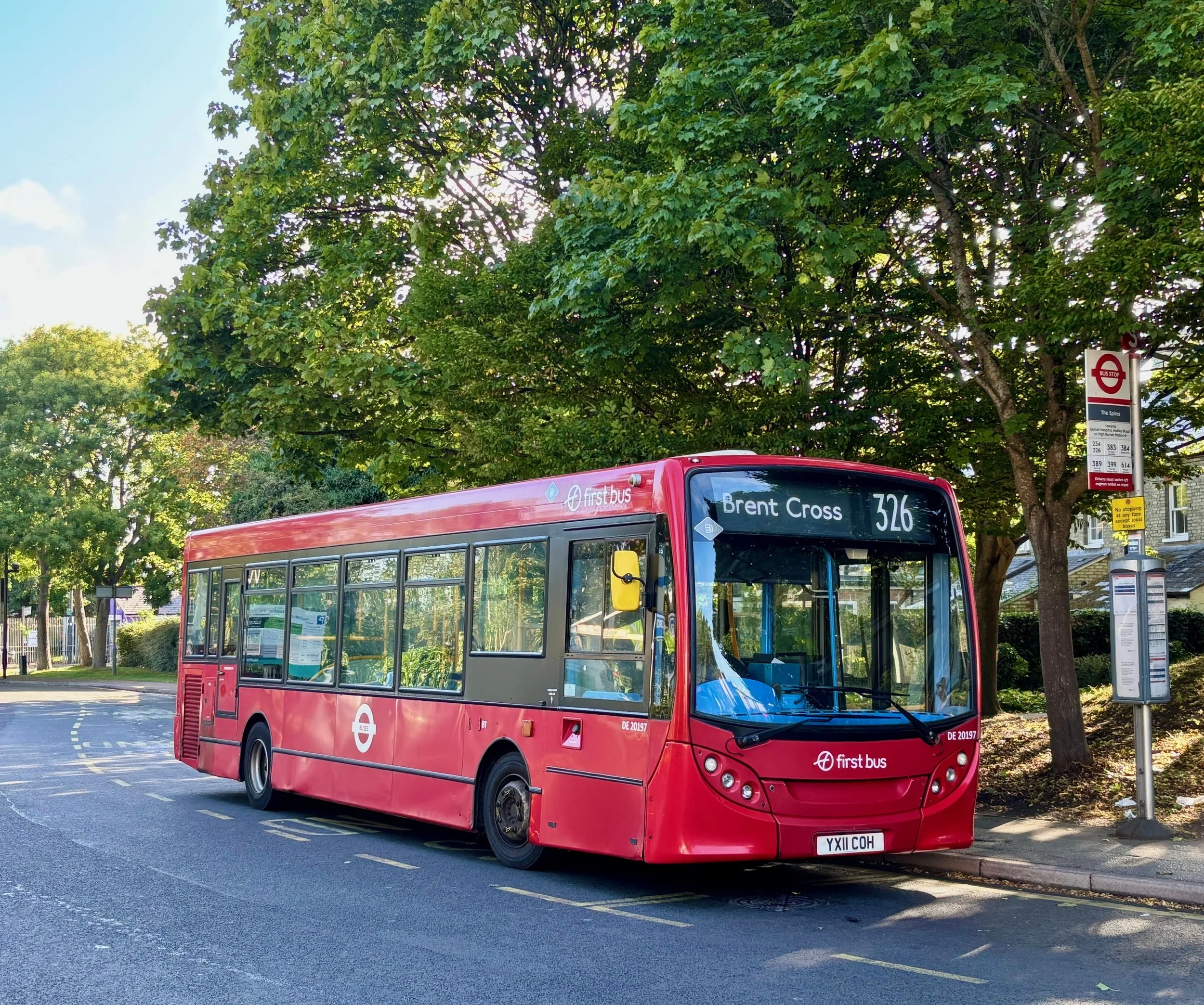 At Mount Vernon, I switched to the other TfL route serving that location, the H11. This is operated by First Bus which took over from RATP Group on return to the capital. Enviro200 MMC single decks are the normal fare and next to arrive was DLE30269, operating from the Canons Park (CP) outstation.