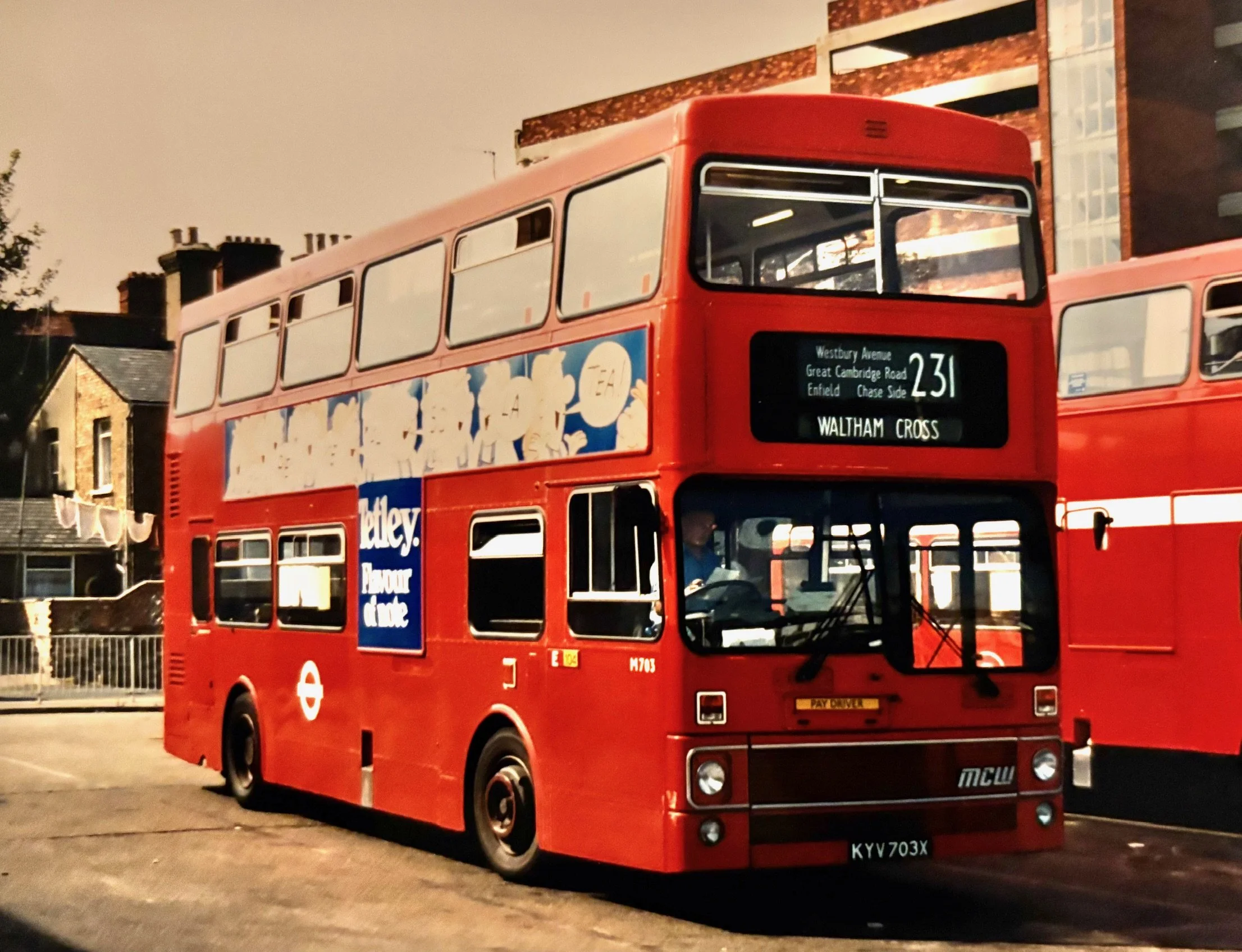 In common with many other single deck OPO conversions of the period, double deckers returned in 1976 with DMS types, with an extension over new territory for buses in 1980 when the 231 was projected over the rest of Carterhatch Lane to Enfield Highway and Brimsdown. The following year, Ms arrived to replace the DMSs. However, in 1985, the 191 took over the Brimsdown leg and the 231 shrank back to Carterhatch once again, although it gained another unusual extension in 1987, this time to Waltham Cross, but on Sundays only due to the withdrawal of the 217 on that day of the week. This didn’t last and this oft-forgotten part of the 231 history ceased in 1990.