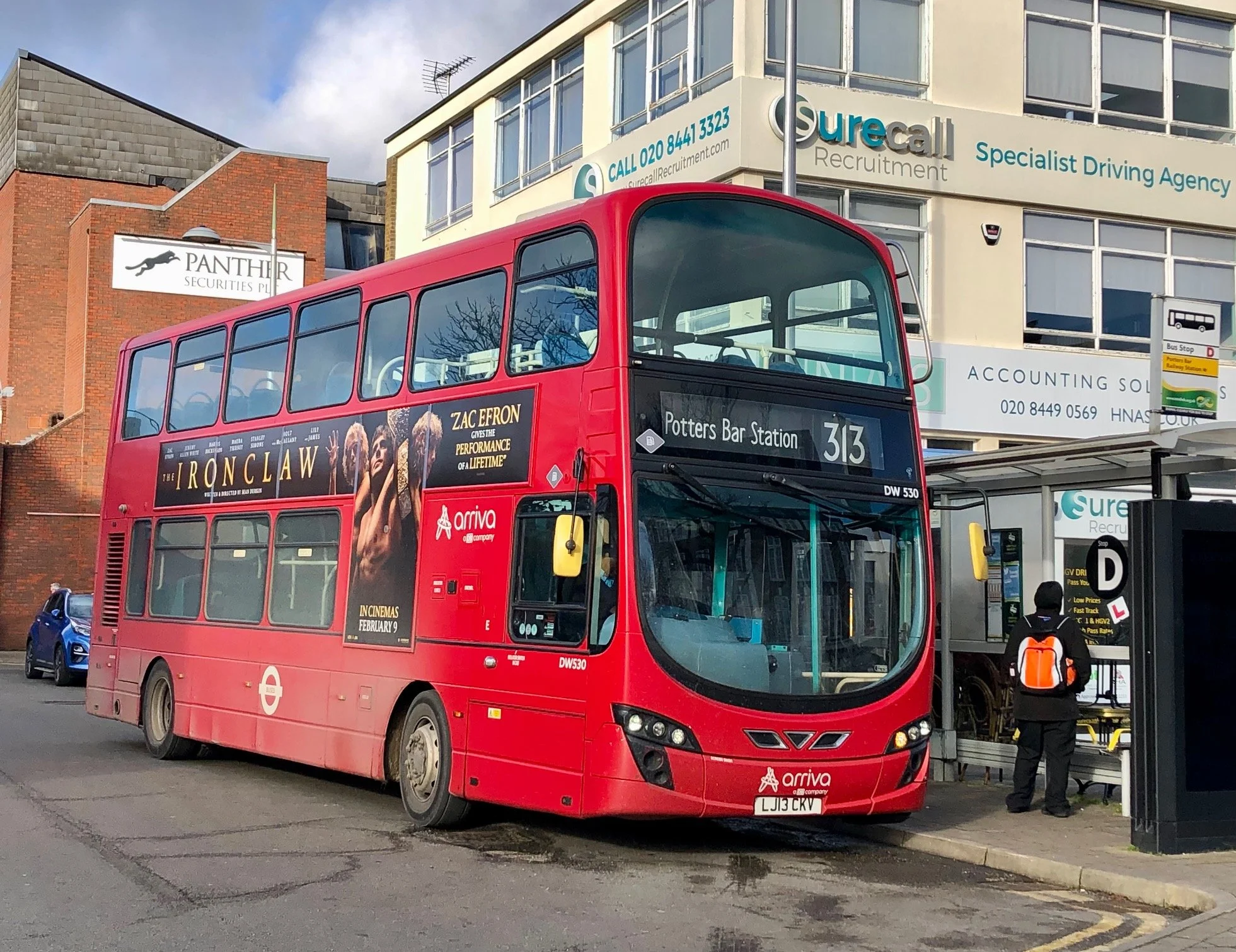 VDL DB300 Wright double deckers provide a support role on the 313 with Arriva, as DW530 of Enfield Garage demonstrates at Potters Bar Station which I rode on my previous visit to the route in January 2024.