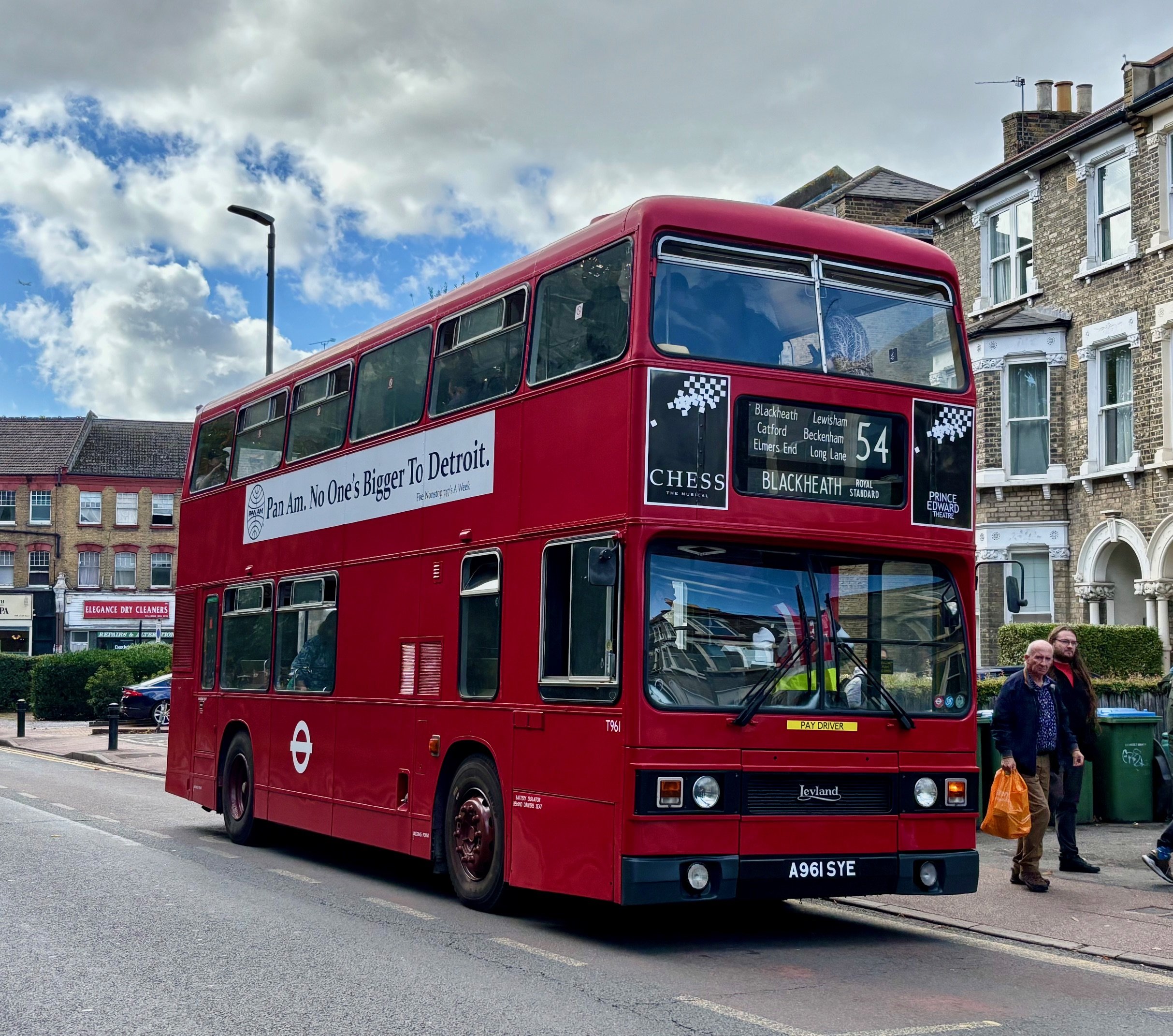 OPO came quite late for a suburban route, with M operation introduced in 1985. Tendering saw the 41 pass to London Suburban Bus in 1994 using Olympians and former London Titans, although this phase didn’t last long and the route reverted to Leaside Buses (later Arriva) after a couple of years, M types then returning. Low floor conversion in the noughties saw DLA, VLW and DW types performing at different times, although in recent years, HV class hybrids entered the mix.