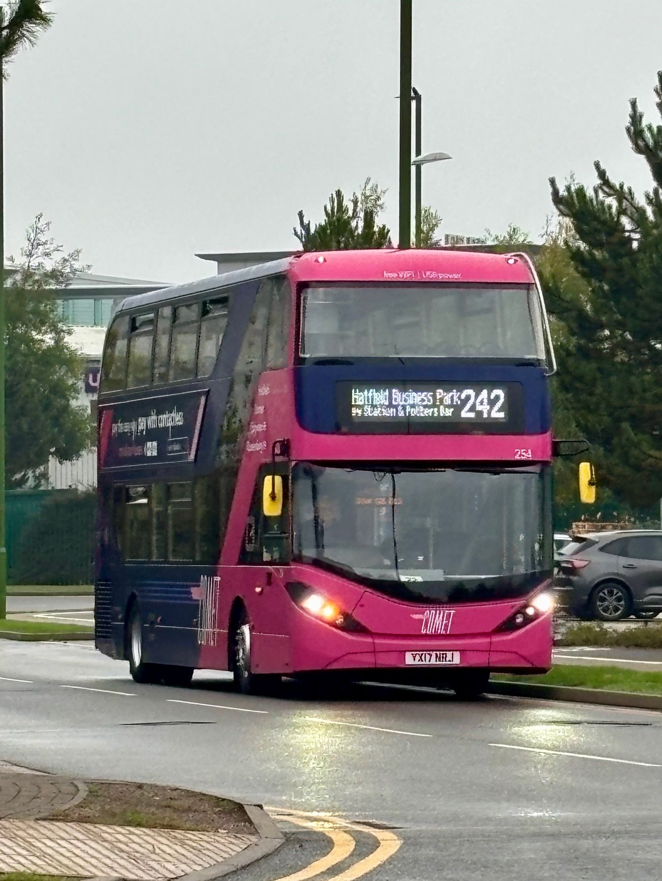 The 217 passed from Go Ahead London to Arriva from 15th November 2025 on a new 7 year contract, with ES class Wright StreetDeck electrics on order. In the meantime, VDL DB300 Wright Eclipse Geminis cover, like DW483 seen at Waltham Cross Bus Station before I travelled on it.