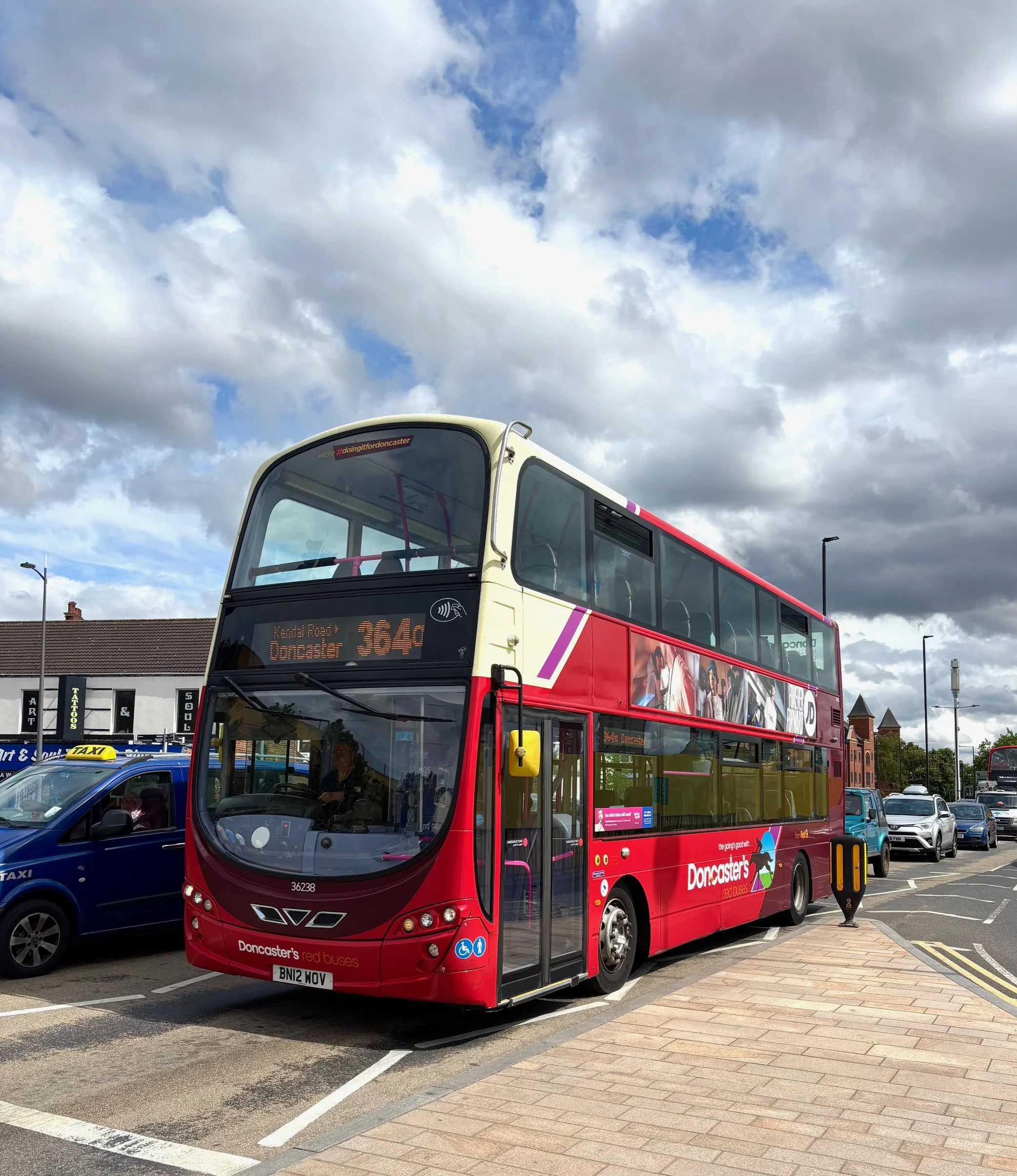This is Volvo B9TL 36238 on the 364A passing Doncaster Railway Station on a circular service via Bentley and Arksey. I had travelled various local routes on a previous trip to the town.