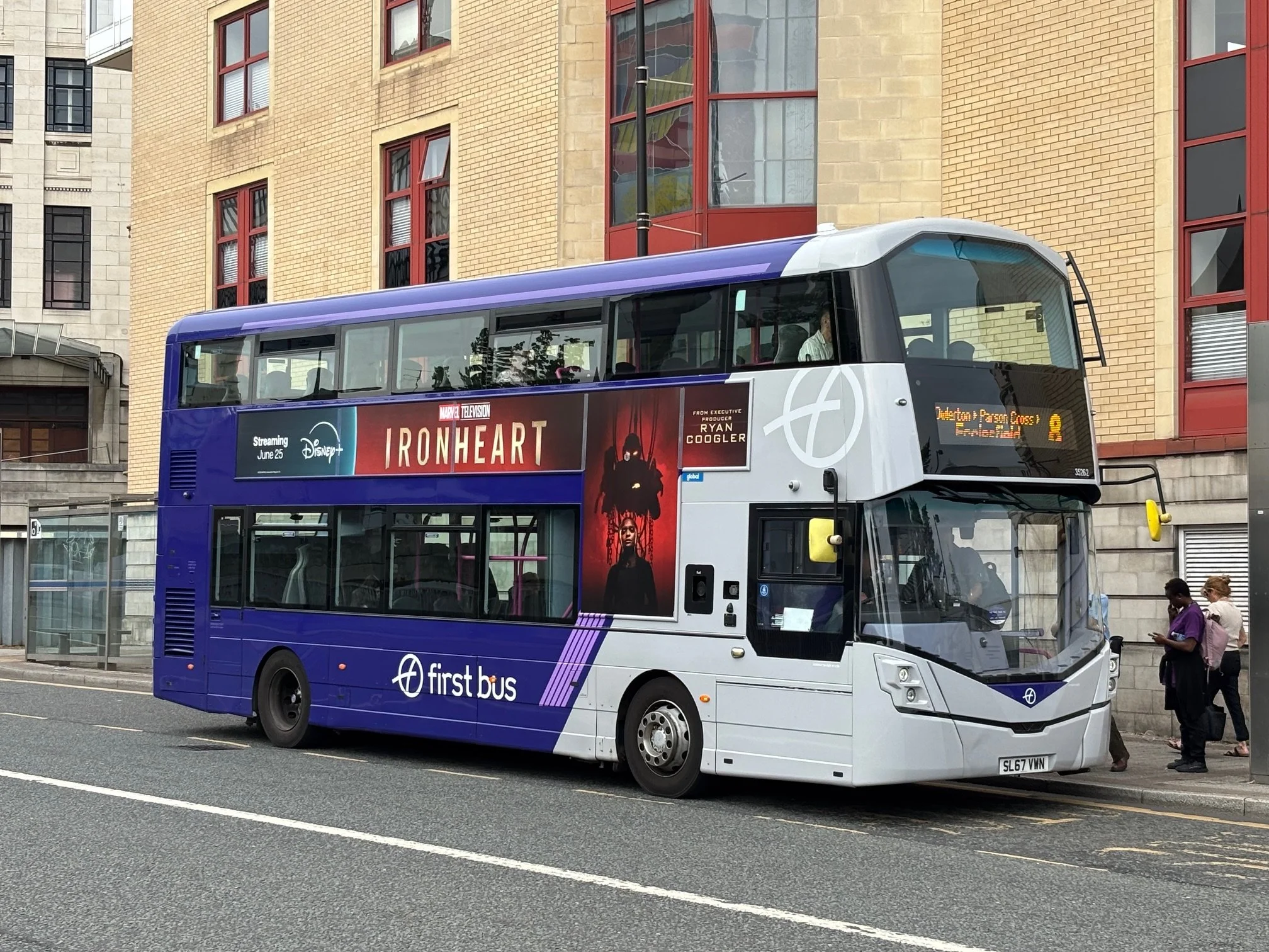 Another First Yorkshire Wright StreetDeck Ultroliner at Arundel Gate in Sheffield City Centre on Route 8 (Birley - Ecclesfield) illustrates the new “first bus” livery.