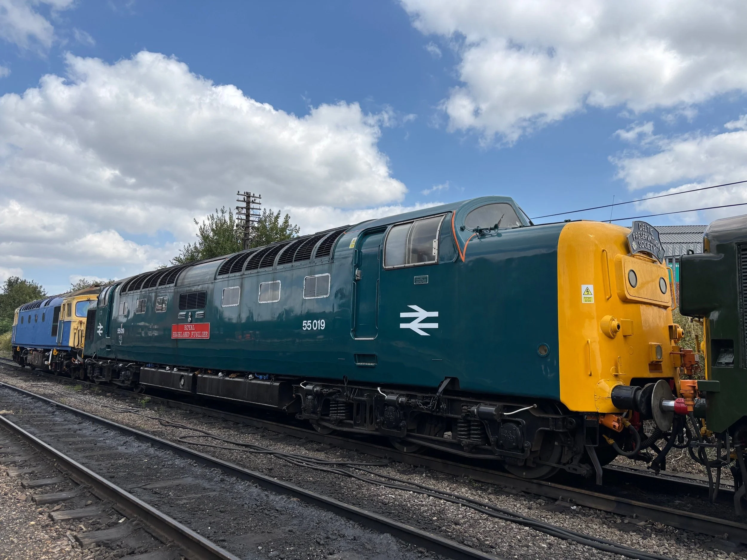 Owned by the Deltic Preservation Society, 55019 “Royal Highland Fusilier” is seen in the sidings at Loughborough Central. The loco regularly visits heritage railways for gala events.