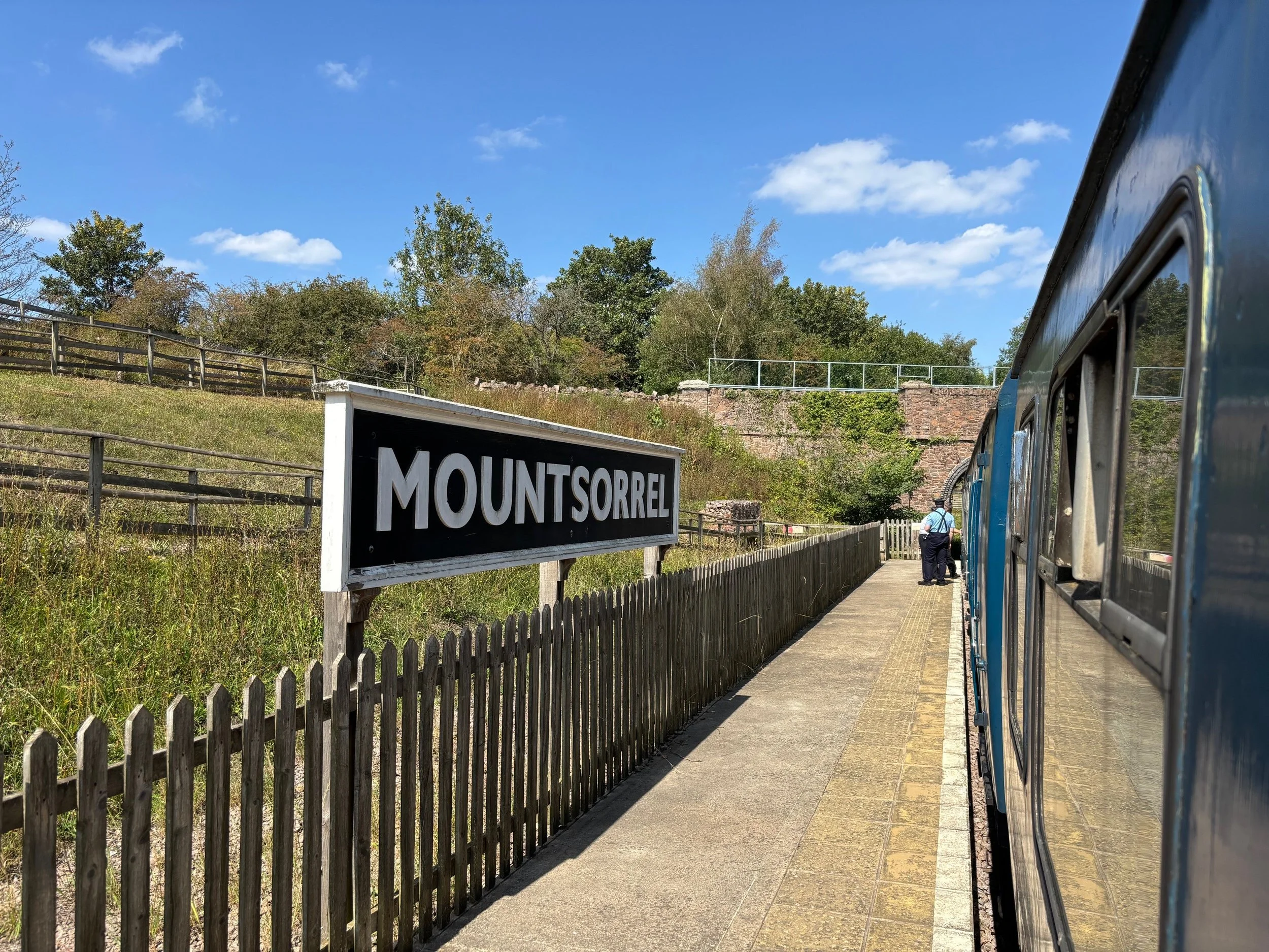 This trip was different though, in that it involved a ride over the Mountsorrel branch of the line, which I had not travelled on before and was reopened in 2015, over part of a former industrial line between Swithland and Barrow-upon-Soar, which served various granite quarries. Arriving at Swithland Sidings box, our driver accepted the token for the single track branch, before changing ends and then proceeding in the reverse direction onto the branch line itself. Limited speed as we made our way through countryside and through a “green tunnel” of trees to the first stop at Nunckley Hill, where it is possible to alight to visit a historic quarry reconstruction and other attractions. Continuing on, it was a short distance through the woods to the terminus at Mountsorrel, just short of the original main quarry site.