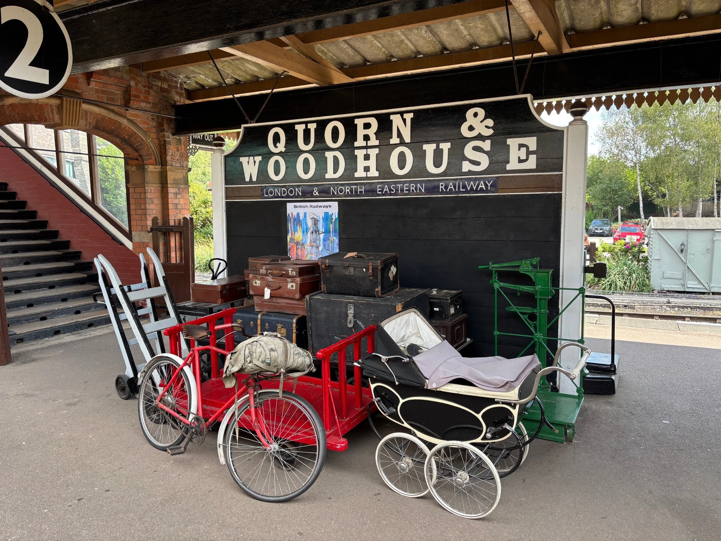 The first stop is Quorn & Woodhouse station, built on the classic GCR “island” model, but much smaller than Loughborough Central. The station is restored in 1940s style and has a NAAFI style tearoom under the bridge and the Butler Henderson Cafe in the yard. This reflects the wartime heritage when the site was much used by troops involved in preparation for “D Day” in 1944. Exchanging a few passengers, we were soon off again along an embankment with fields on each side. The next major feature is a bridge over Swithland Reservoir, which can be viewed on both sides with birds and other wildlife in evidence. This was followed by Swithland Sidings, where various preserved goods wagons were seen, together with a signal box. Running through a cutting, we then entered Rothley Station.