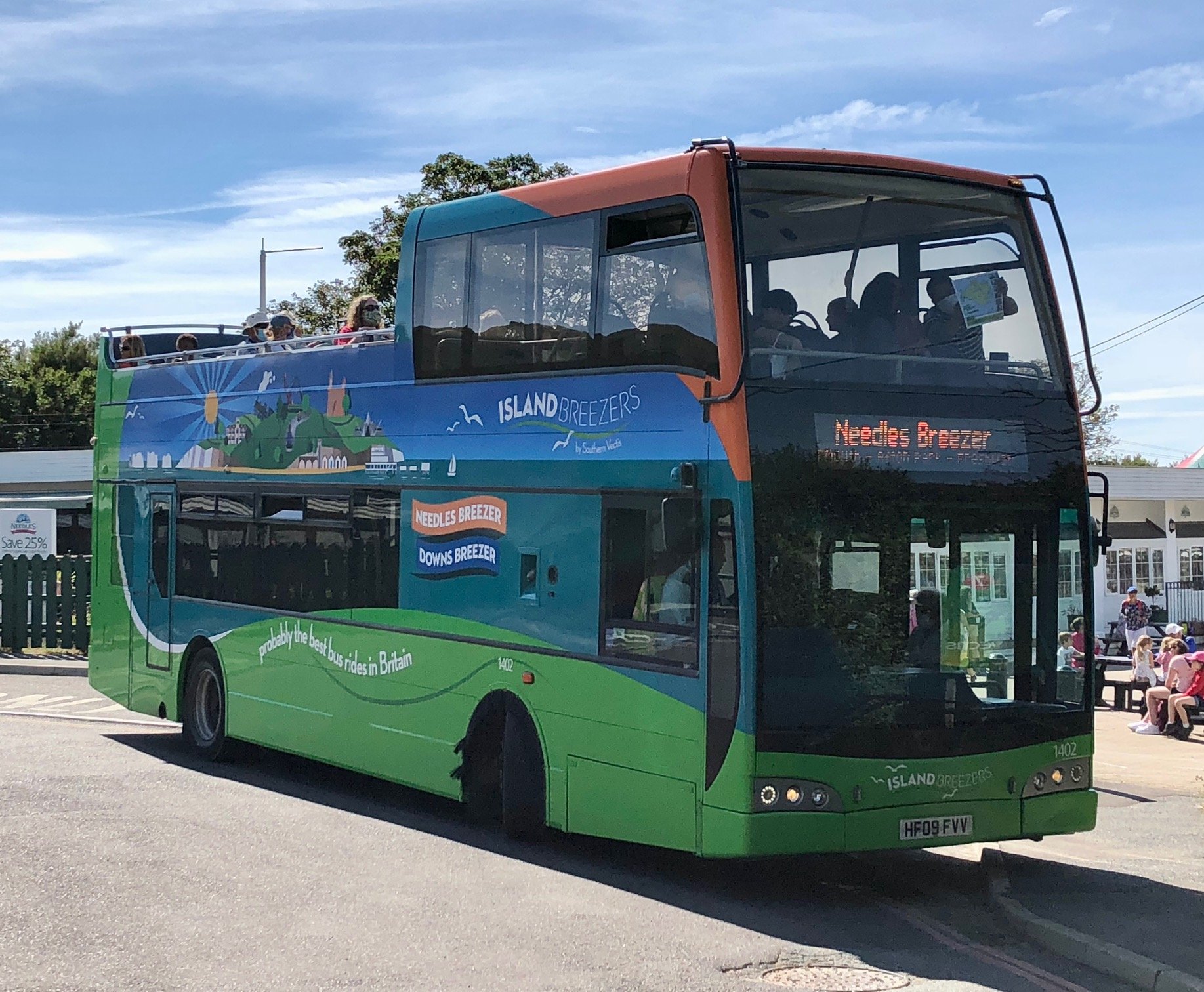 Whilst it was too early in the year to ride any of the Southern Vectis Open Top routes on this trip, I did cover them on my previous visit in July 2020, where we see Scania Optare Visionaire 1402 at Alum Bay on the Needles Breezer in Island Breezers livery.