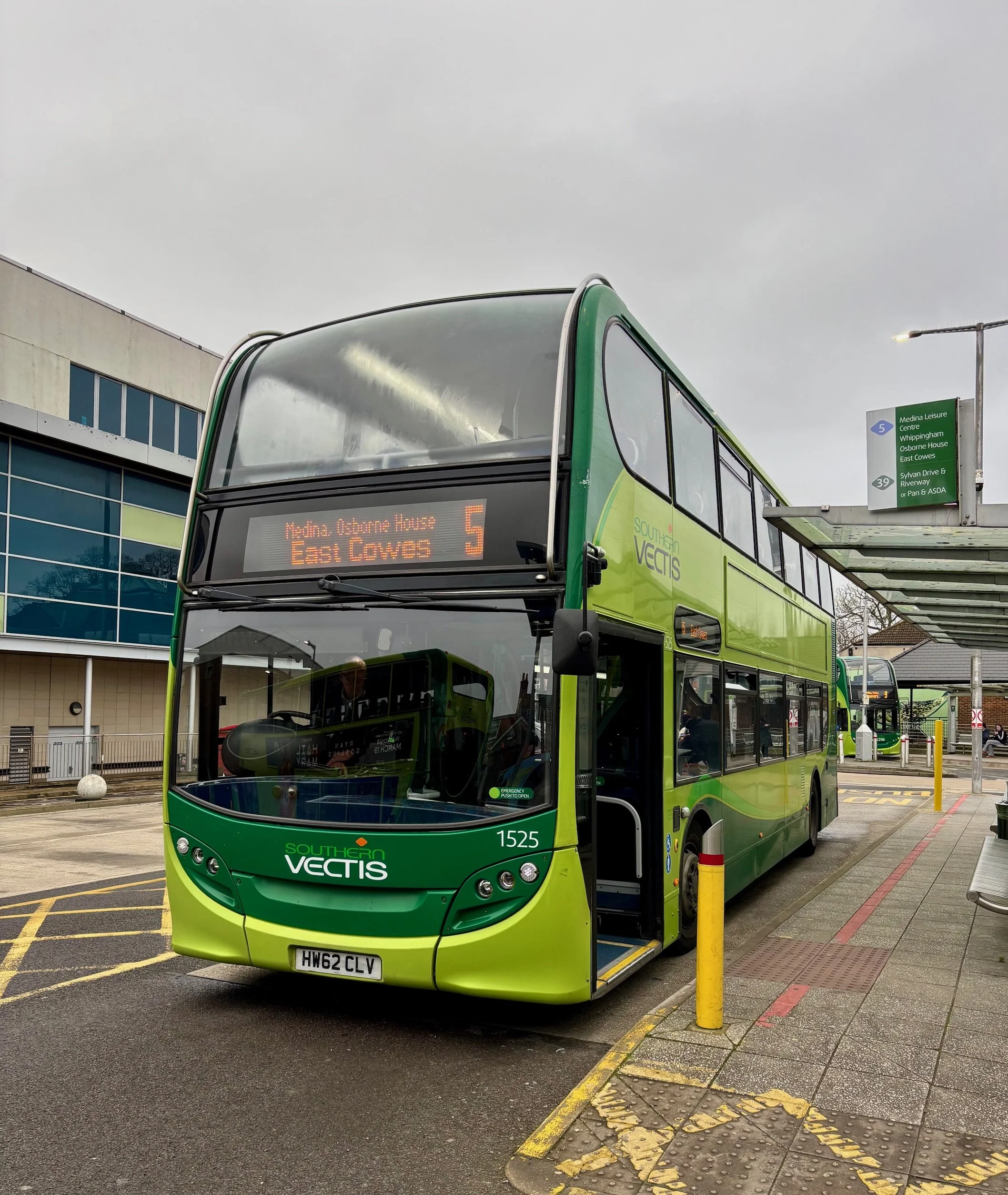 Enviro400 1525 prepares for a journey to East Cowes on Route 5 at Newport Bus Station. I did a round trip aboard.