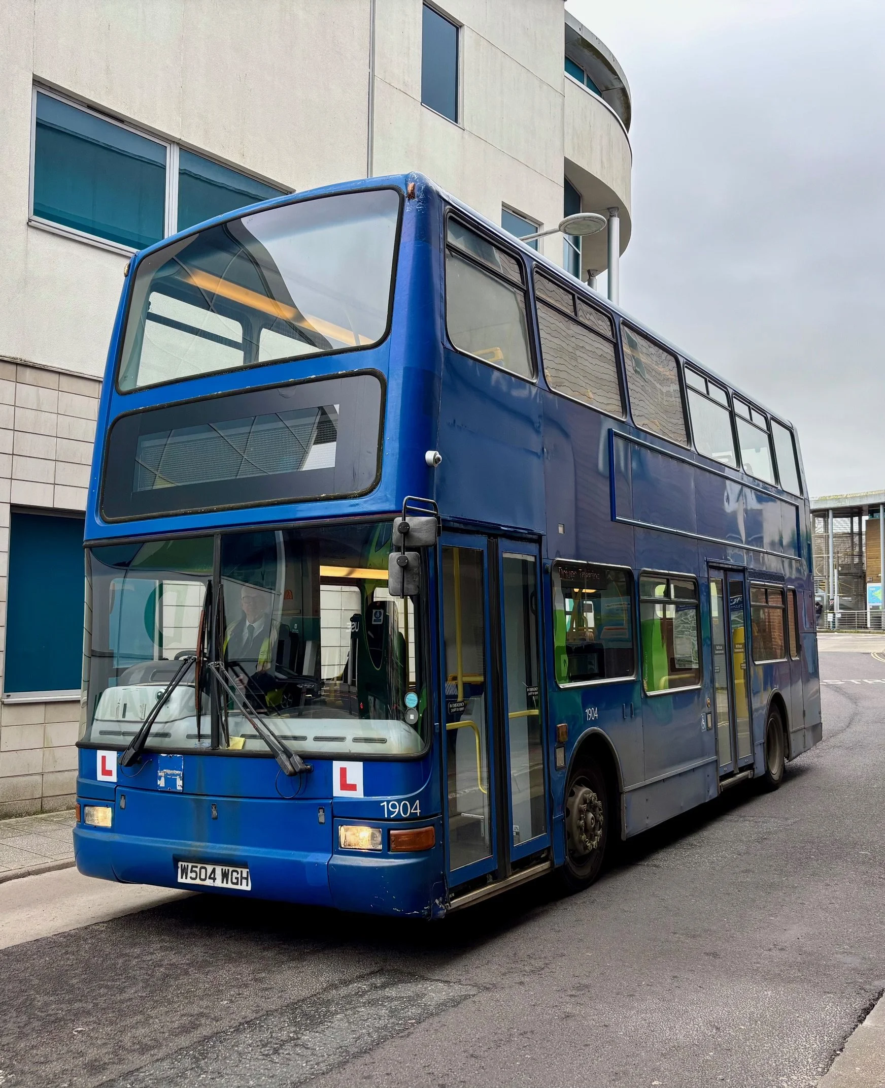 The vehicle is in “Bluestar” livery from its time on the mainland but is now a driver trainer, although here was being used as a driver ferry bus.