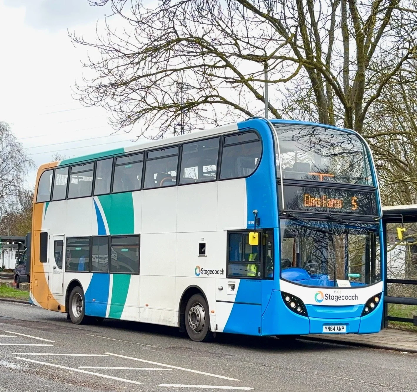 Stagecoach Scania Enviro400 15198 in the now superseded “Local Livery” at the Woodside terminus of Route 5 in Bedford during my ride on it. This was the only double decker on the service and was said by the driver to be a rare occurrence.