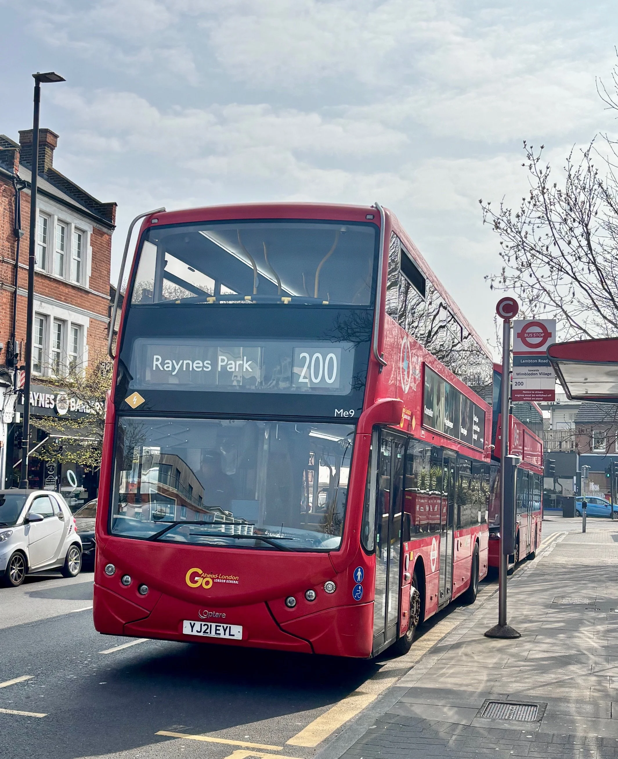 Optare Metrodecker Me9 is seen at the Raynes Park end of the 200 during my trip and represents the main allocation on the route at this time.